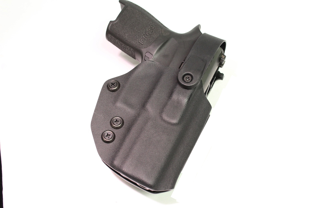 The Duty Holster (Non-Light/Laser Bearing only) is made with a single layer of 0.125″ thickness Kydex and can be fitted with a level II retention hood kit. The optional hood kit is a thumb released, spring loaded retention system which prevents the weapon from being removed from the holster without disengaging the hood first by depressing the thumb release. The Duty Holster can be ordered with a paddle kit, a DD/OS Gen 2, Stingray Loop, a thigh rig assembly, or no mounting kit if you have your own Blade-Tech mounting kit.