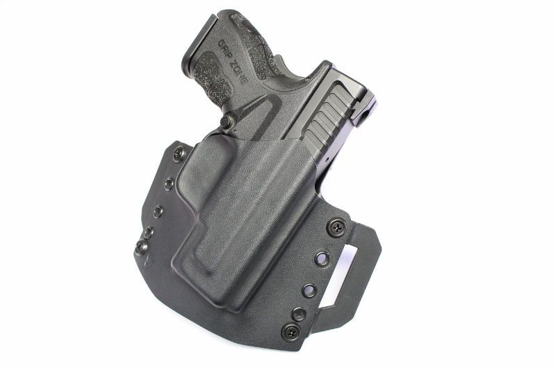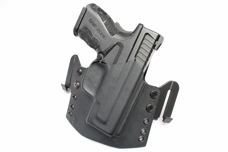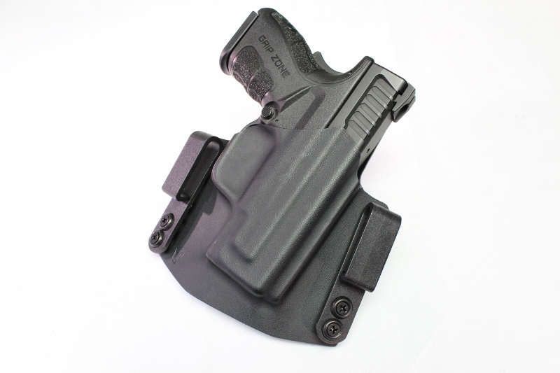Our Type I Holster is currently our most versatile product. Depending upon your mounting choice, it is available as an IWB (Inside the Waistband) or OWB (Outside the Waistband) carry. It offers our widest variety of colors and pattern options and can be attached to our Magazine Carriers for an easy, sleek set up. Note: If you are planning to order a magazine carrier accessory as an attachment option, ACLP’s or Speed Clip mounting is required! (The holster pictured is for a Glock 17/22 w/TLR-1 Light, and a 10 degree forward cant)